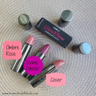Provo a descrivervi i colori partendo da Ombre Rose, un nude con una forte componente rosata; Cosmic Dancer invece è un prugna con sottotono viola; infine Closer è un nude tendente al beige/pescato. I rossetti Nabla Diva Crime hanno un finish definito \”modern matte\”, scorrono benissimo sulle labbra e solo dopo qualche minuto dall\’applicazione si opacizzano senza mai seccare le labbra. Durano tantissimo e resistono molto bene a mangiate e bevute ed in tutto questo hanno un prezzo molto accessibile pari a 12,90 euro, oltre che una quantità leggermente superiore alla media di 4.2g. Per maggiori informazioni vi rimando al sito ufficiale Nabla.