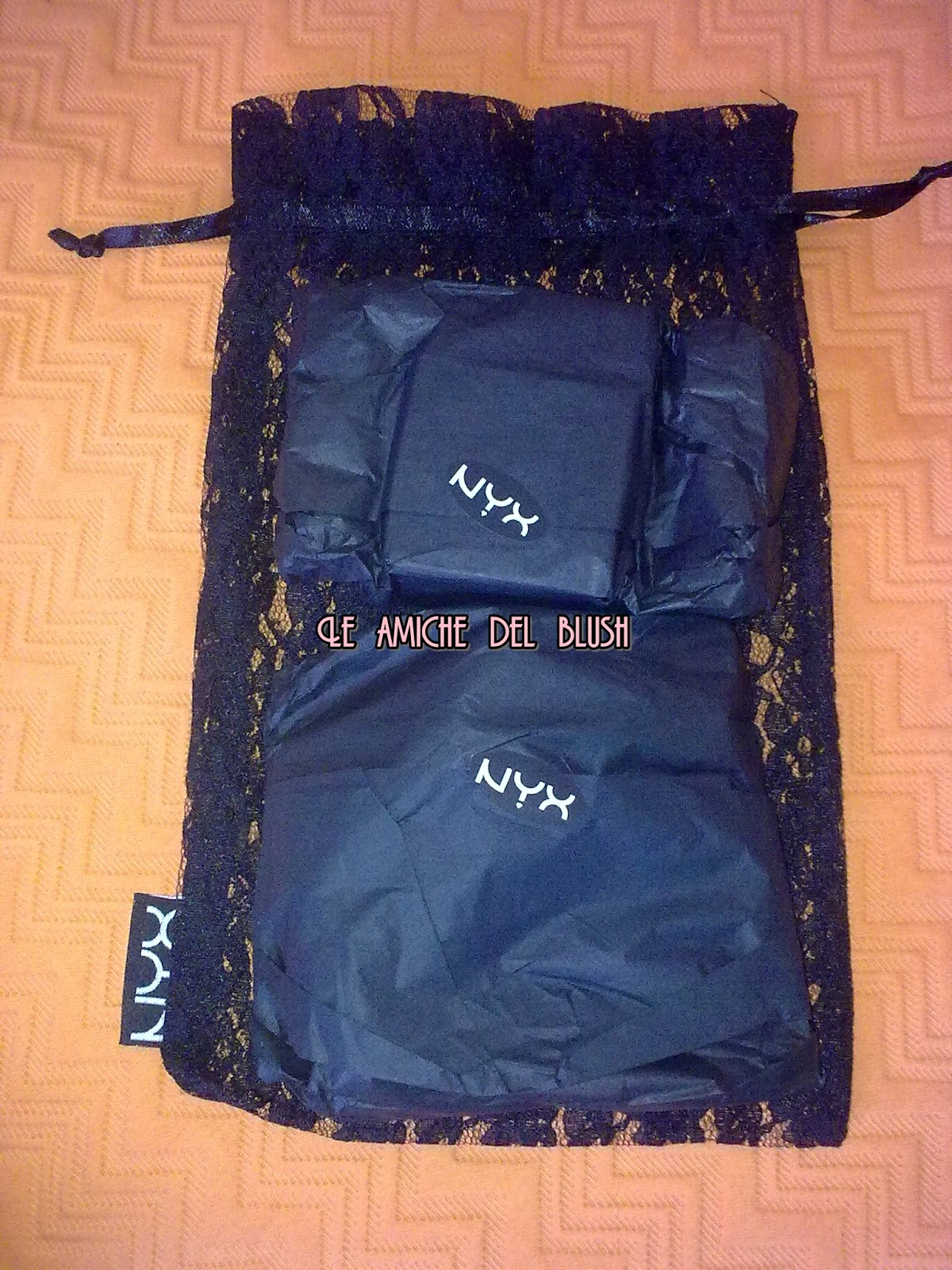 i prodotti erano poi suddivisi in due pacchettini, incartati con un involucro nero chiuso da un adesivo NYX