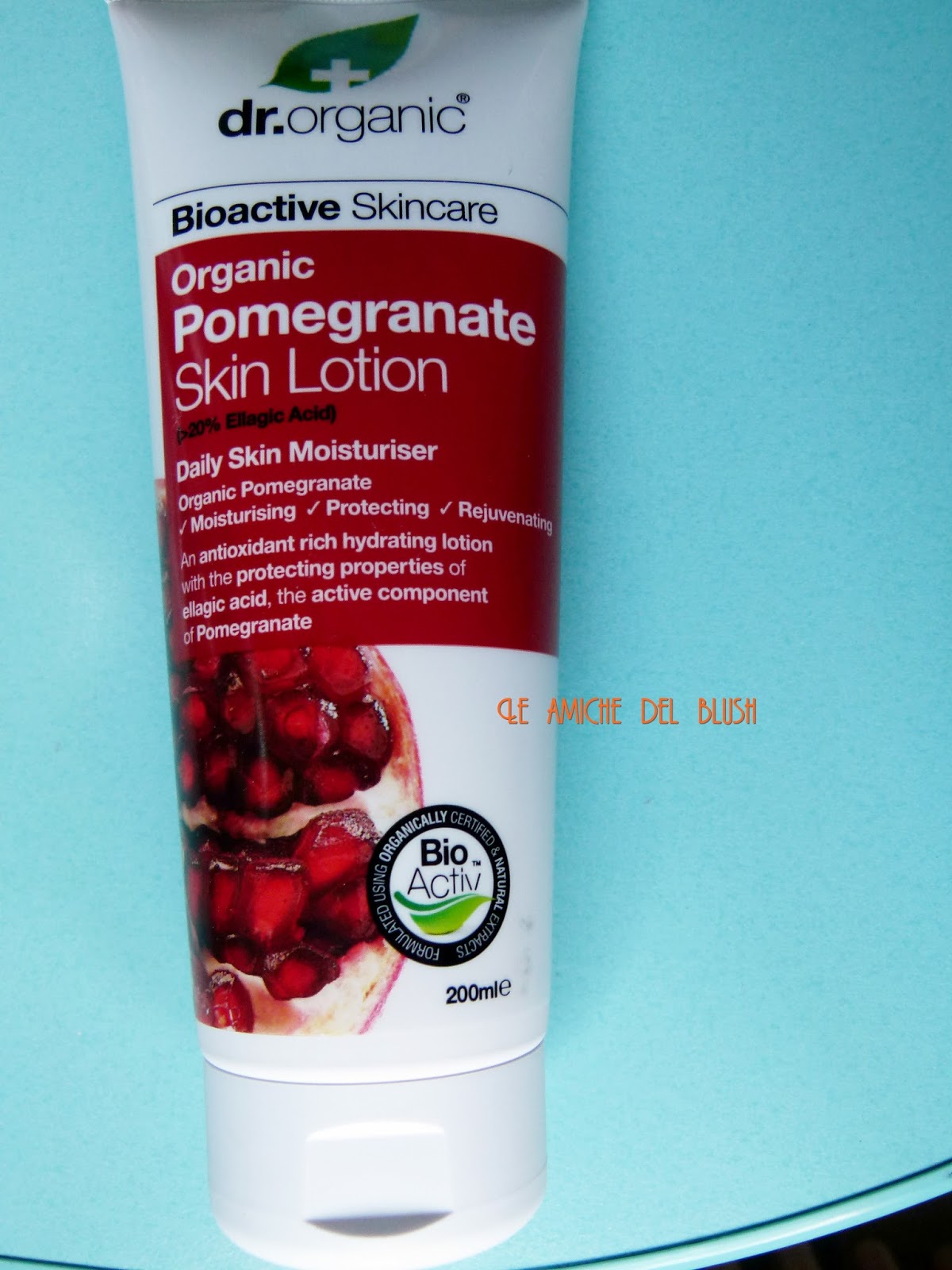 Più o meno lo stesso discorso può essere fatto per la pelle inaridita dal cloro della piscina. Dopo la doccia sentivo davvero la necessità di una crema corposa e nutriente che andasse a riequilibrare l\’idratazione della pelle. Ho provato la lozione corpo al melograno di Dr Organic in confezione da 200ml e all\’inizio notai che stentava un pò ad assorbirsi. Il profumo meraviglioso e l\’idratazione duratura però, mi hanno spinta a non abbandonarla come crema, basta infatti massaggiarla un pò di più e verrà assorbita meglio; inoltre il profumo vi dura sulla pelle per tutta la giornata e continuate a sentirlo, invece molte altre creme svaniscono nel nulla.