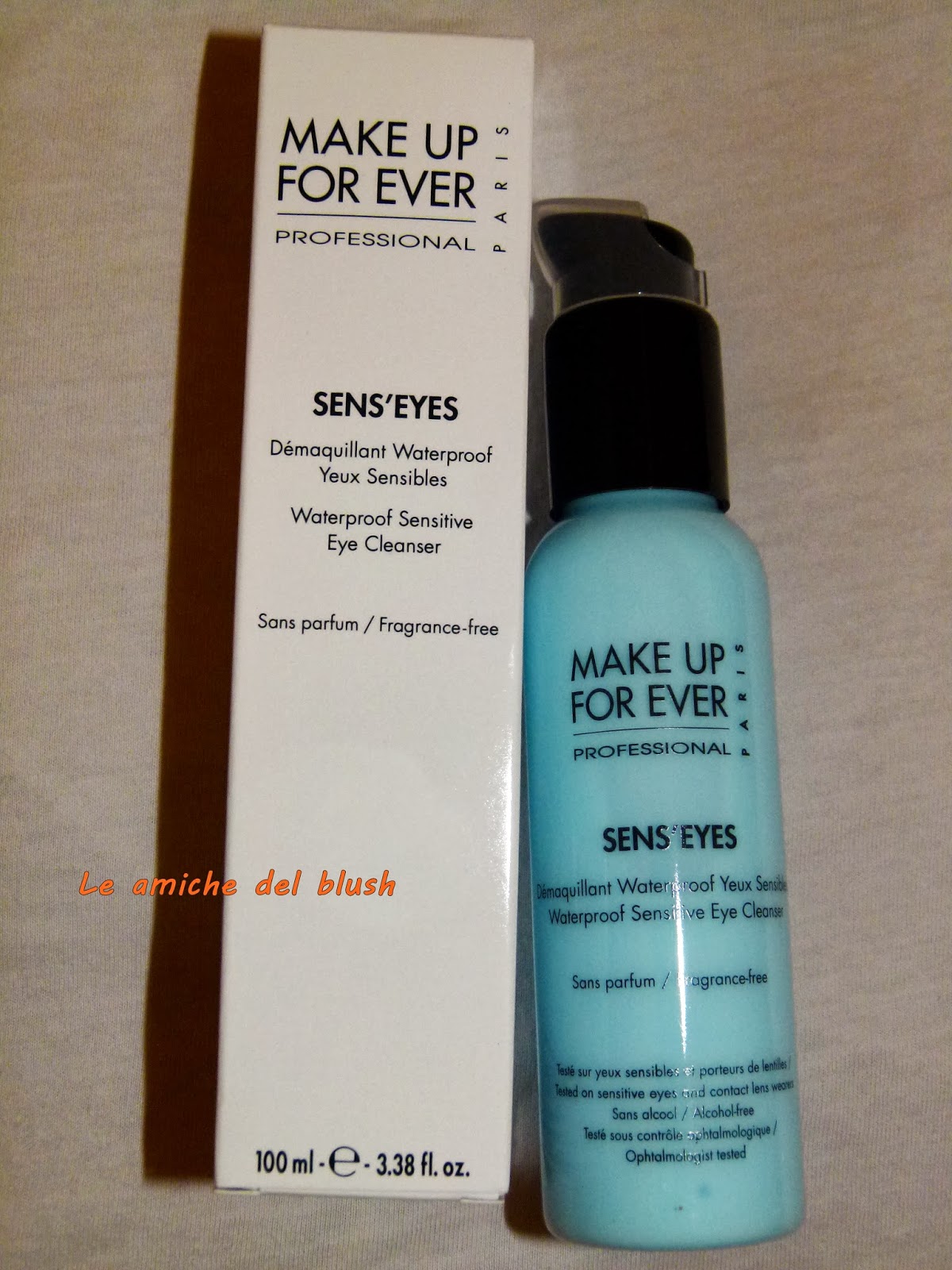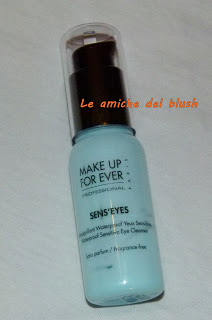 Questa estate sono stata in America e quando ho fatto un acquisto da Sephora, in cassa mi è stato fatto scegliere un sample di prodotto in omaggio, così ho deciso di provare lo struccante Sens\’eyes di Makeup Forever. Avevo letto tantissimi pareri negativi su questo prodotto e quindi il rischio era molto alto, ma essendo un omaggio ho deciso di provare e….. menomale, perchè mi piace tantissimo! Il sample conteneva ben 30ml di prodotto e quindi ho avuto modo di testarlo a fondo. Questo è uno struccante bifasico insolito, perchè non ha la tipica consistenza acquosa bicolore di tutti gli altri, ma si presenta sotto forma di crema azzurra. La minitaglia, così come la full size, sono dotate di erogatore a pompetta che trovo ultra pratico. Bastano 2 dosi sul dischetto di cotone per struccare benissimo e a fondo anche i trucchi molto pesanti. La caratteristica che più mi piace è, oltre al fatto che non brucia, che non lascia la zona unta dopo l\’uso, anche se io risciacquo lo stesso con acqua, ma non ce ne sarebbe bisogno.