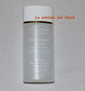 Il primo è di Clarins, si chiama Demaquillant Express per occhi sensibili e portatori di lenti a contatto. Nulla da dire se non che svolge benissimo il suo lavoro e strucca tutto, anche mascara e eyeliner waterproof, senza bruciare o irritare. Anche se sul sito è riportato che è privo di \”effetto grasso\” un velo di unto lo lascia e sarebbe meglio sciacquare la zona con l\’acqua dopo l\’uso. Non è più in vendita su Sephora.it ed essendo un campioncino non saprei dirvi il prezzo. Potete trovarlo in tutte le profumerie che vendono il marchio Clarins. La full size contiene 125ml