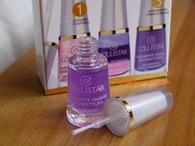 Dopo la fase 2, se volete procedere con l\’applicazione dello smalto, vi consiglio di lavare bene le mani, in quanto l\’elisir tende a lasciare un po\’ unte unghie e cuticole. A questo punto procedete con la fase 3 che altro non è che una base rinforzante, indurente, anti-rottura: un vero e proprio smalto da stendere e far asciugare.