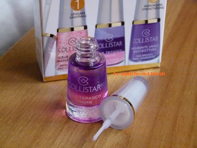 Il kit, in vendita nelle maggiori profumerie d\’Italia al prezzo di 15/18 euro, è composto da 3 boccette identiche a quelle dello smalto di 6 ml ciascuna.