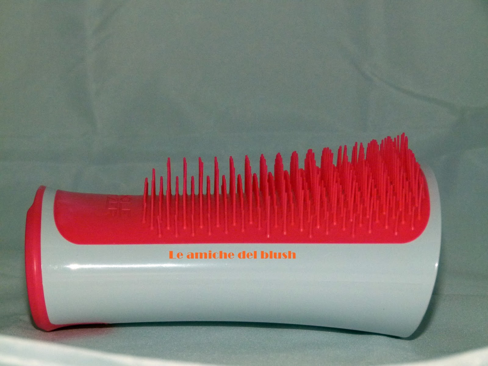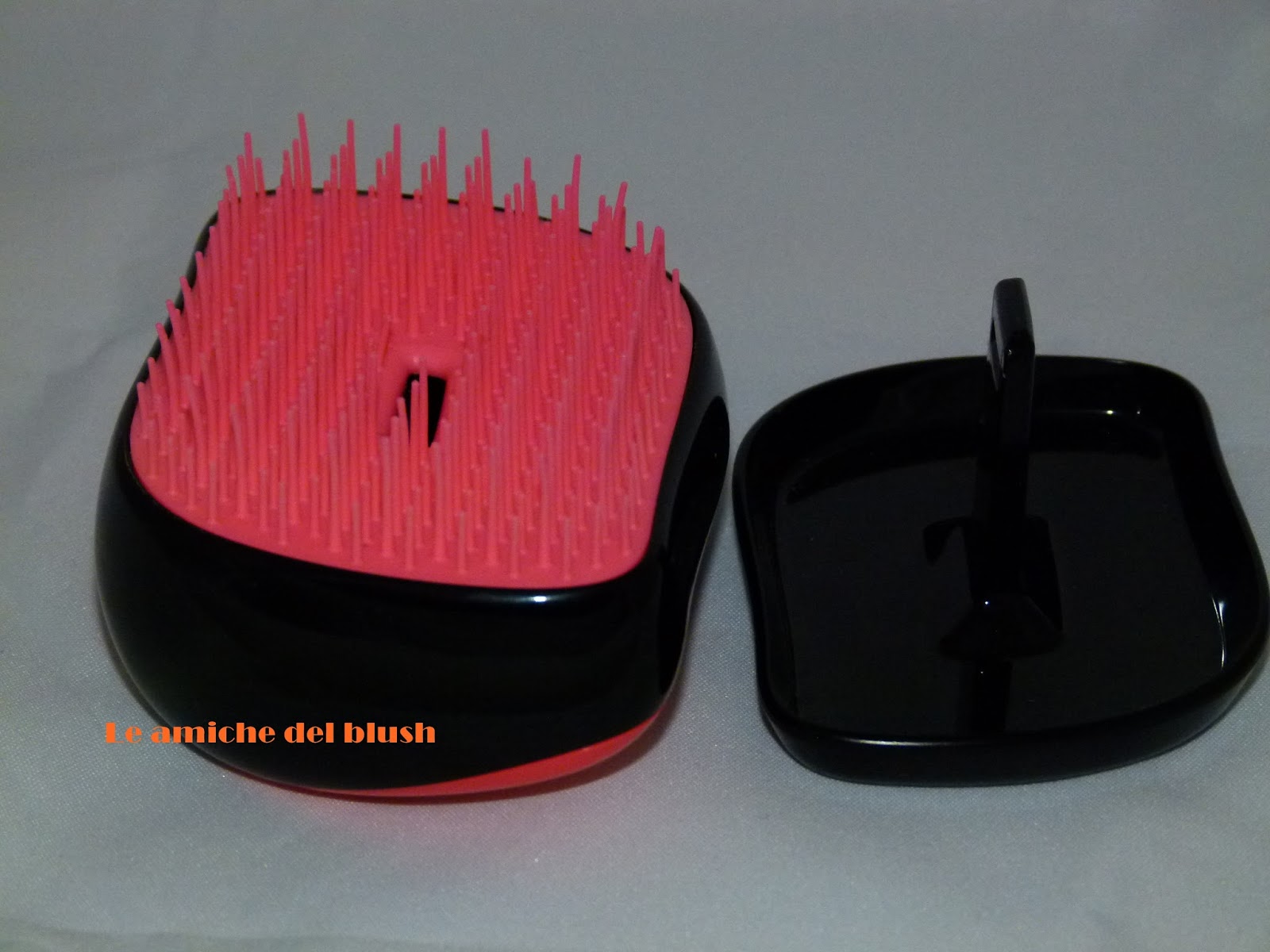 La prima spazzola che ho acquistato, in versione Compact, è pensata per essere portata facilmente in borsa, in viaggio, in palestra in quanto è molto piccola e leggera ed ha un \”coperchio\” che protegge le setole evitando che si deformino. Tutta la spazzola, setole comprese, è in plastica rigida, nel mio caso fucsia e nera.