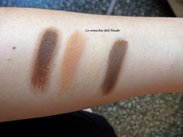 In generale si tratta di una palette di colori nude, molto portabili, perfetti per essere combinati da soli e creare look sia da giorno che da sera. I marroni opachi a mio avviso sono utili anche per rempire le sopracciglia e il colore più chiaro può essere usato come illuminante. Per quel che riguarda i colori shimmer, sono l\’ideale per aggiungere brillantezza ad un trucco da sera.