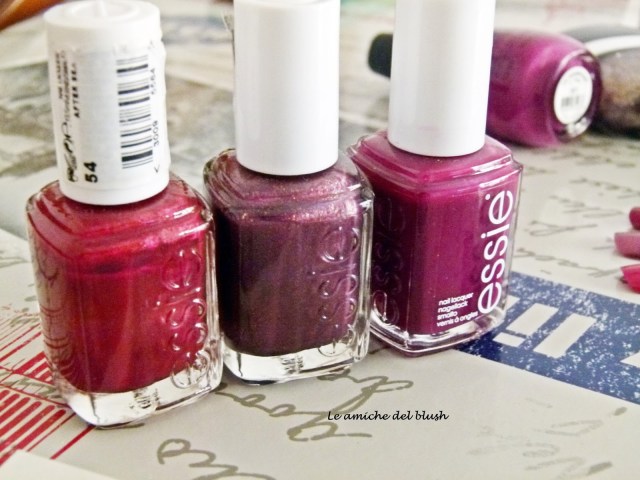 In autunno non possono mancare i colori bordeaux e vinaccia, quindi ho inserito 3 smalti Essie. Da sin. After Sex – I\’ts Genius – Bahama Mama.