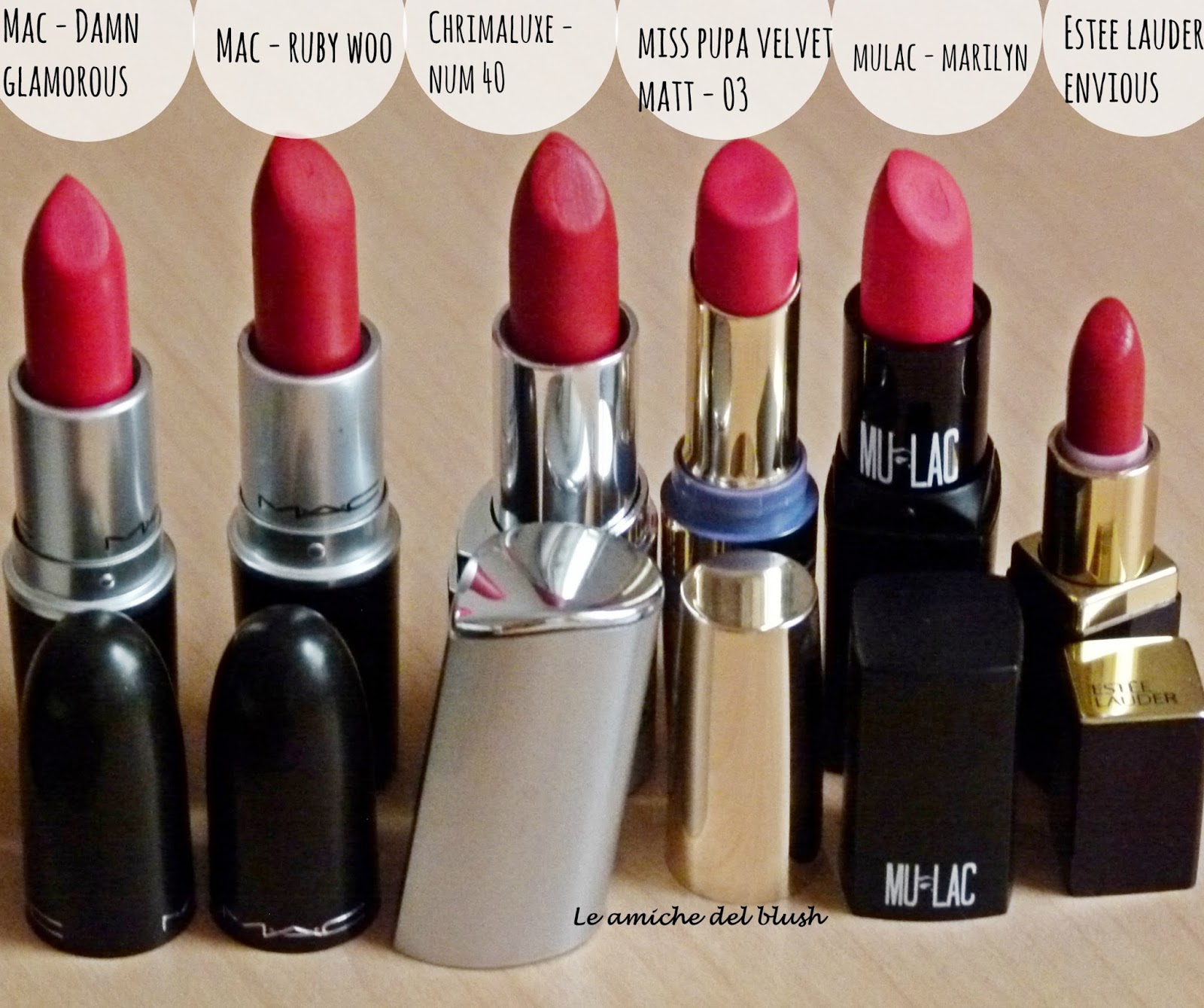 Ecco i rossetti che ho messo a confronto