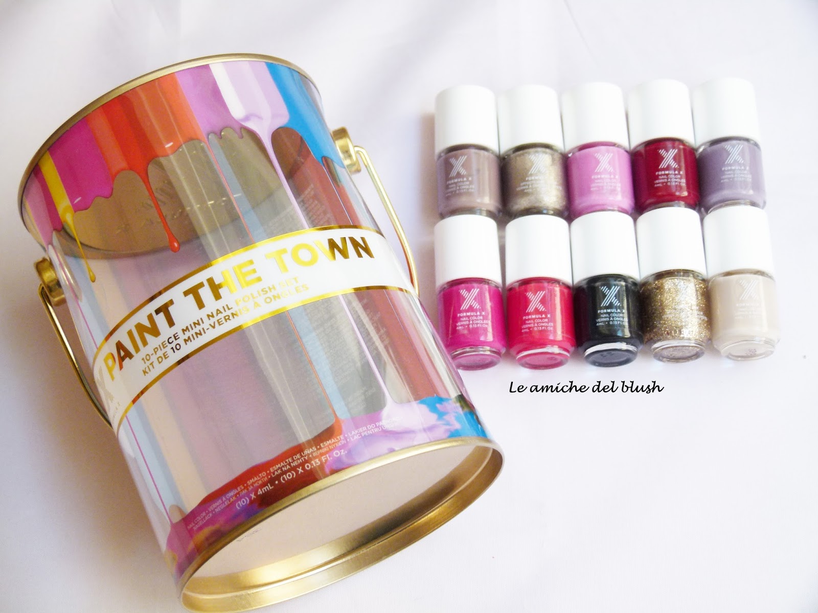 Oggi vorrei parlarvi di un cofanetto in edizione limitata da poco sbarcato su Sephora.it e negli store: Paint the Town by Formula X. Il kit contiene 10 mini smalti da 4 ml ciascuno per un costo di 29 euro.