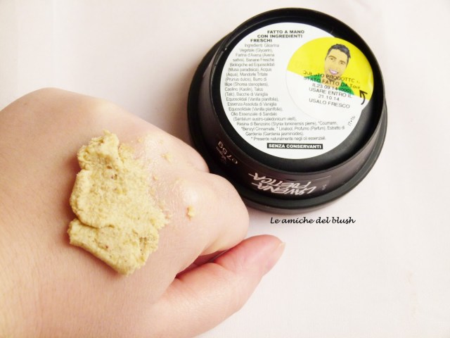 Questa maschera mi è stata omaggiata dalla boutique Lush di Pisa in occasione dell\’incontro con le blogger e devo confessarvi che è la prima che provo. Sono rimasta piacevolmente sorpresa dalla consistenza morbida, dalla doppia azione e dal meraviglioso profumo. Io ho una pelle mista e nonostante questa sia una maschera per pelli secche, ho potuto apprezzarla moltissimo in quanto idrata e nutre, ma non ingrassa assolutamente la pelle. Devo ammettere che temendo la data di scadenza l\’ho usata molto in fretta nel senso che l\’applicavo quasi tutti i giorni e sono riuscita ad usarla per almeno 6/8 volte. La mia pelle del viso ha apprezzato moltissimo questo trattamento intensivo e nutriente ed io stessa ero felicissima di potermi concedere questa coccola per lo più la sera prima di andare a dormire. Insomma, promossa a pieni voti! Sicuramente voglio provarne altre e poi come sempre vi farò sapere 🙂