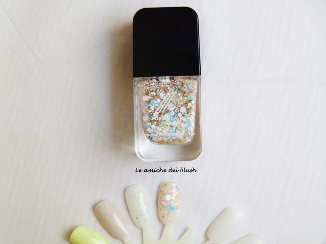 Demolition fa parte degli explosives ed è composto da glitter molto grandi di colore azzurro, verde, bianco e rosa chiaro su base trasparente. Cliccate qui per vederne l\’effetto