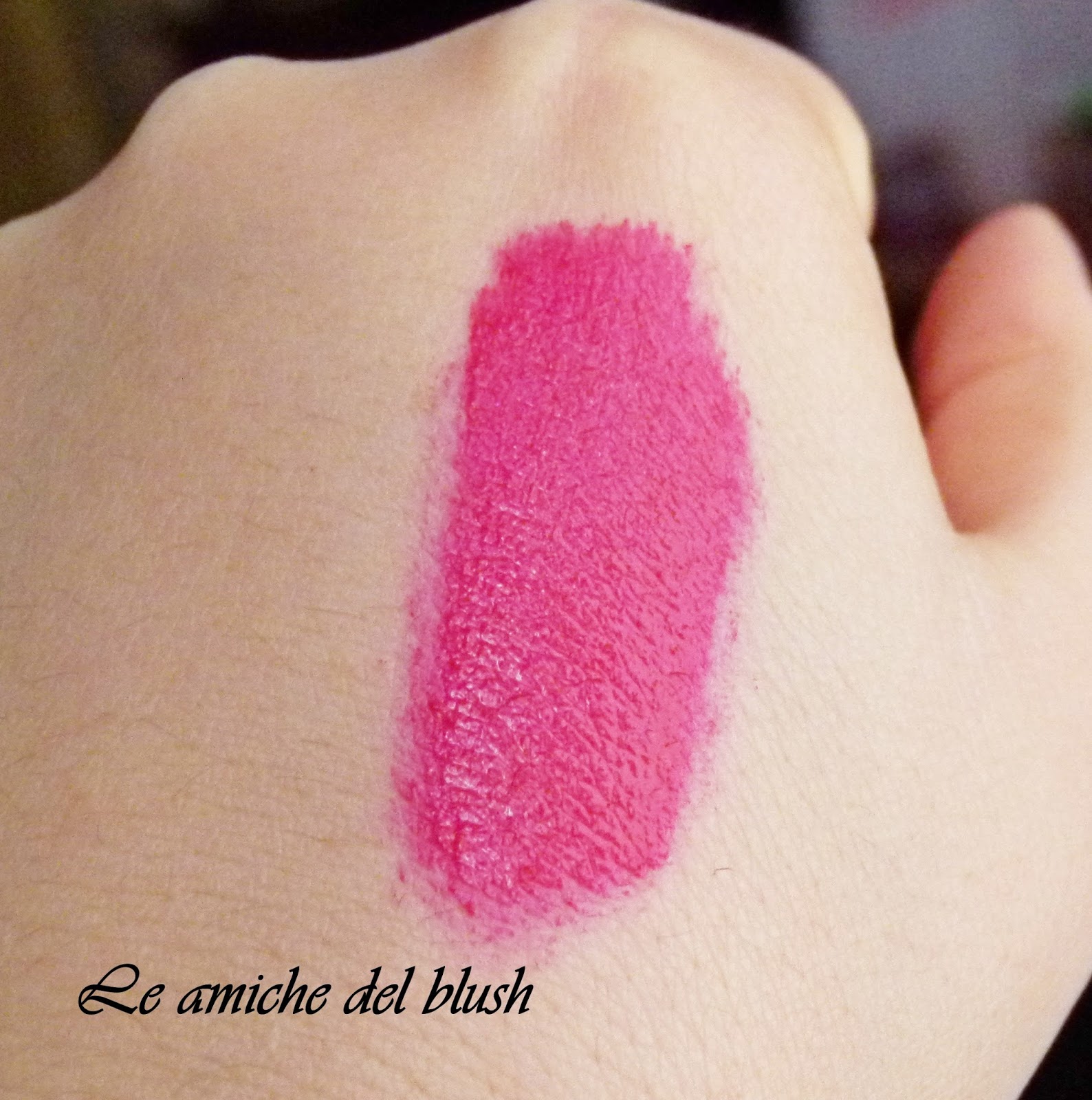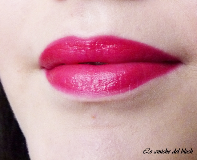 Il numero 503 \”code\” è stato il primo che ho swatchato sulla mano e mi ha subito colpito perchè è un rosso freddo tendente al fuchsia, senza glitter e risulta opaco sulle labbra anche se riesce a mantenere un velo di lucidità e confort. Inutile dire che dura a lungo ed ora che lavorando da Sephora indosso un rossetto anche per 8 ore di fila, è diventato in assoluto il mio fedele alleato, anche perchè il rosso si adatta perfettamente alla divisa. Di solito ne stendo un primo strato che poi tampono con un velina e passo al secondo strato che mi aiuta a far si che il colore resti intatto fino a sera. Raramente l\’ho usato anche come base per altri rossetti, ma non ne vale la pena, perchè è perfetto usato da solo.