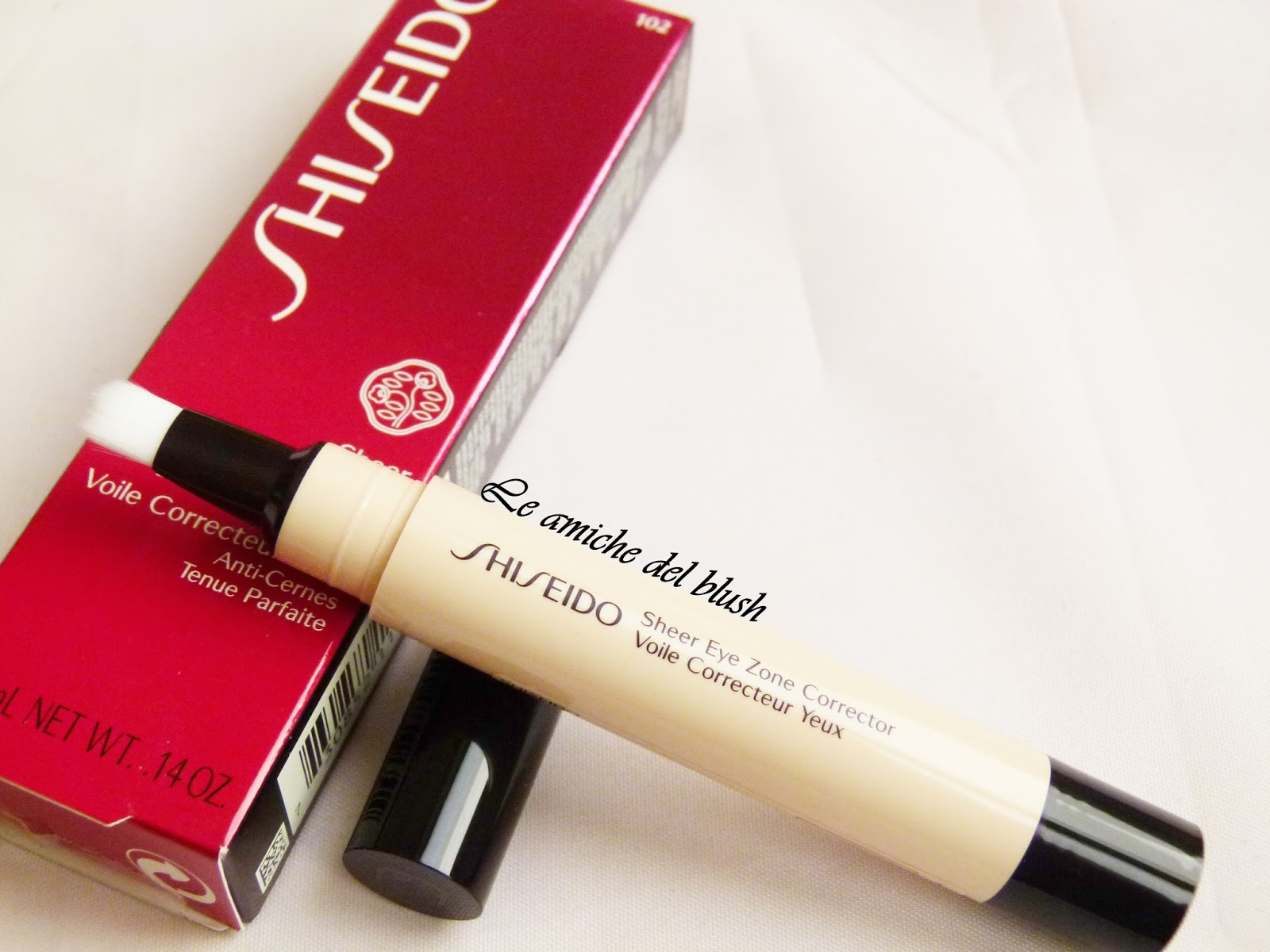 La texture è molto leggera e la gamma cromatica fa si che i colori siano tutti illuminanti. Lo Sheer Eye Zone Corrector di Shiseido garantisce una copertura della zona occhiaie che resta invariata per tutto il giorno. Io ho preso nello specifico il colore 102, che è il secondo di ben sei tonalità. E\’ molto chiaro, ma sfumato bene con il fondotinta mi da una coprenza perfetta senza segnare le piccole linee di espressione che ho nel contorno occhi. Quando si asciuga si fissa da solo, non ha bisogno della cipria, ma io per sicurezza ne metto una spolverata, per stare tranquilla fino a sera.