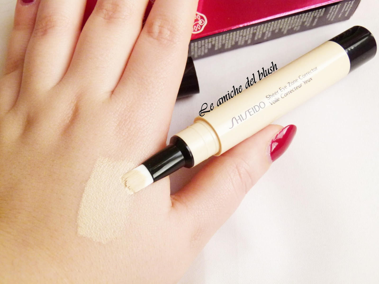 Da circa un mese sto utilizzando questo correttore di Shiseido specifico per il contorno occhi. Si chiama Sheer Eye Zone Corrector, ed è illuminante e leggero allo stesso tempo. Si presenta sotto forma di penna con la punta fatta di setole; basta ruotare la parte inferiore per far fuoriuscire il prodotto. Ne basta molto poco per coprire bene, può essere sratificato ed ha l\’enorme vantaggio di poter essere sfumato direttamente con l\’applicatore.