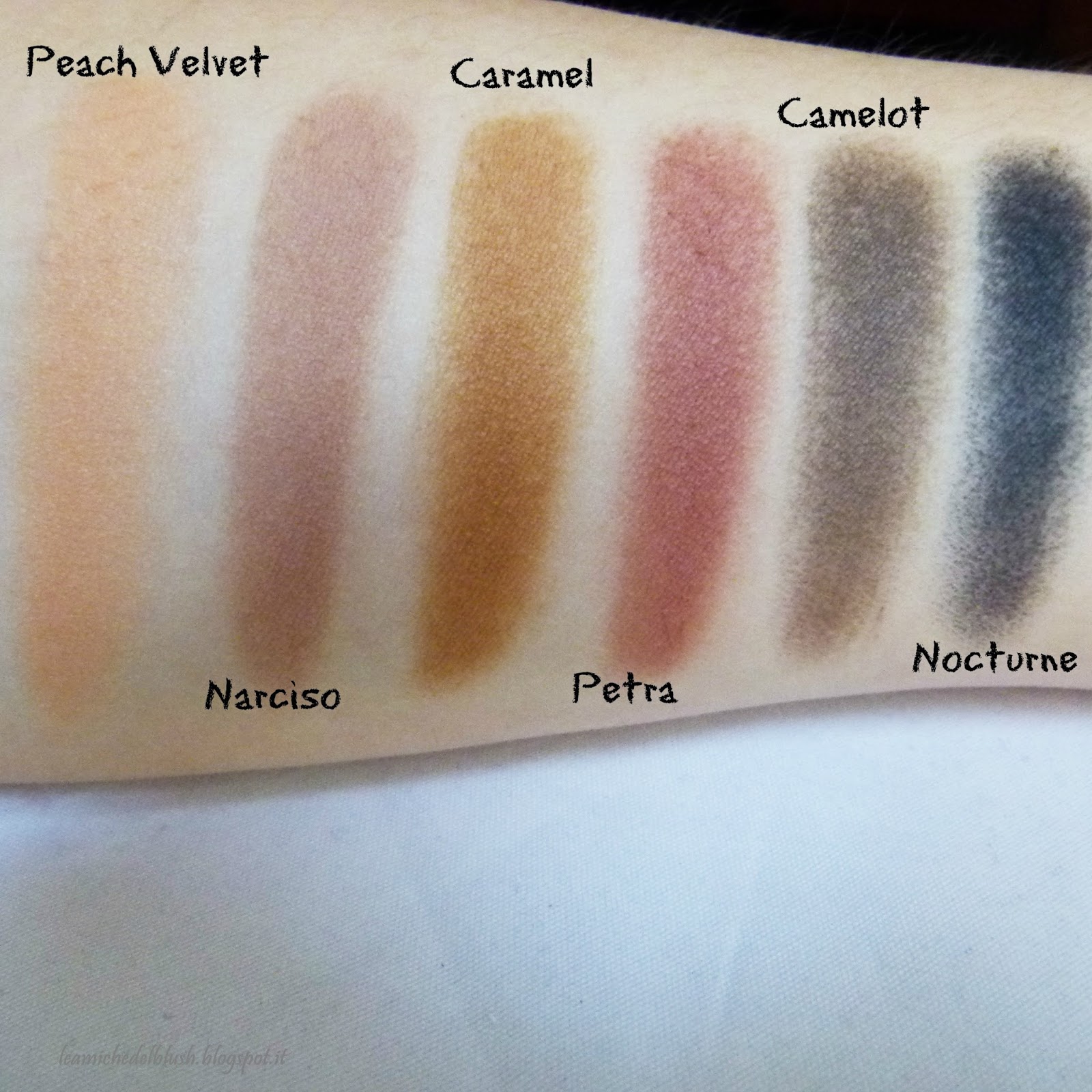 Le mie prime impressioni sugli ombretti Soft Matte di Nabla sono molto positive. Non sono polverosi, ma sono meno vellutati dei Bright. Nocturne e Camelot sono un pò farinosi come texture, mentre Caramel e Narciso sono decisamente più morbidi e vellutati. In generale tutti scrivono e si sfumano bene senza creare macchie sulla palpebra.