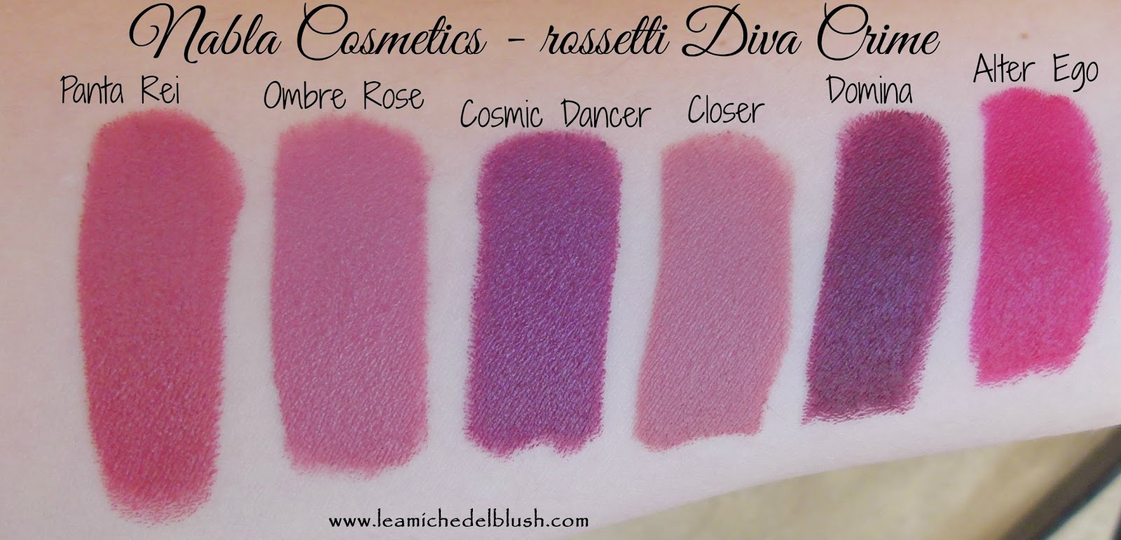 Cliccando qui potete vedere gli swatches di altre tre tonalità di Diva Crime!