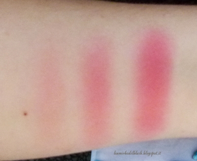 Io ho scelto di acquistare il numero \”03 Rouge Mistral\” un rosso fragola con delle pagliuzze dorate molto discrete, che donano luce al viso senza effetto glitter e sono quasi impercettibili se non colpite dalla luce.