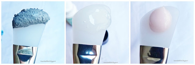 Tre effetti diversi corrispondono anche a tre texture molto differenti tra loro: la Mud Mask già dal nome stesso, ha la consistenza (e il colore!) del fango. E\’ molto densa e corposa, si riesce a stendere abbastanza bene ed inzia ad asciugarsi nel giro di pochissimi secondi. La Bubble Mask si presenta sotto forma di gel trasparente che però a contatto con l\’aria diventa mousse di colore bianco. La Night Mask è una soffice crema di colore rosa che viene assorbita dalla pelle e tenuta per tutta la notte.