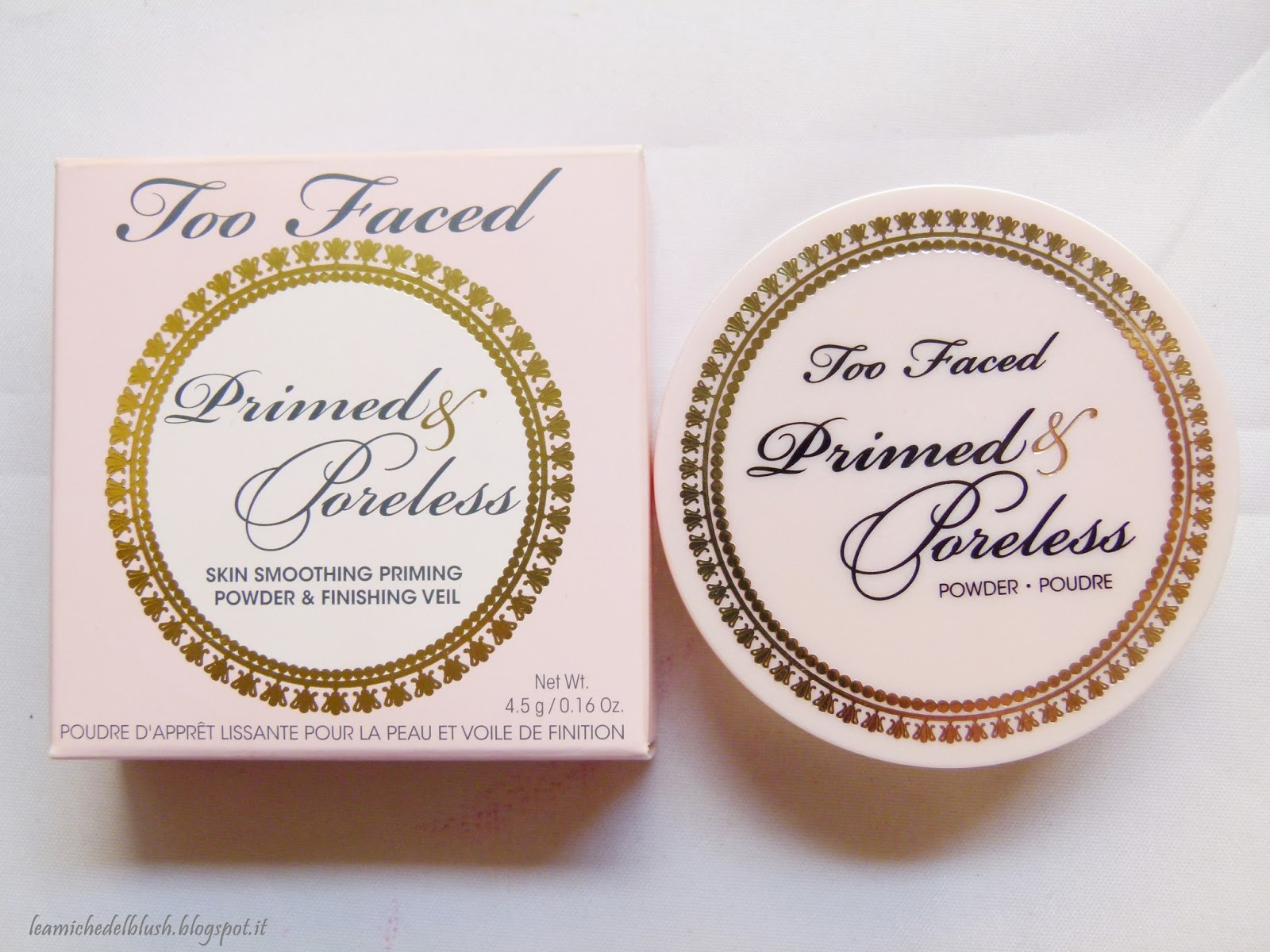 Oggi vi parlo invece di una nuova cipria che sto provando da prima del periodo estivo e che ho acquistato nella versione polvere libera e compatta: Too Faced Primed & Poreless Powder.