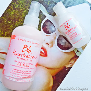 Come già detto più volte, io ho dei capelli molto spessi e crespi e sono sempre alla ricerca di prodotti che mi aiutino a \”sgonfiare\” la chioma riducendo la secchezza ed idratando dalle radici alle punte. Tra le varie linee di Bumble & Bumble ho scelto quindi di provare Hairdresser\’s invisible oil, nello specifico lo shampoo ed il primer.