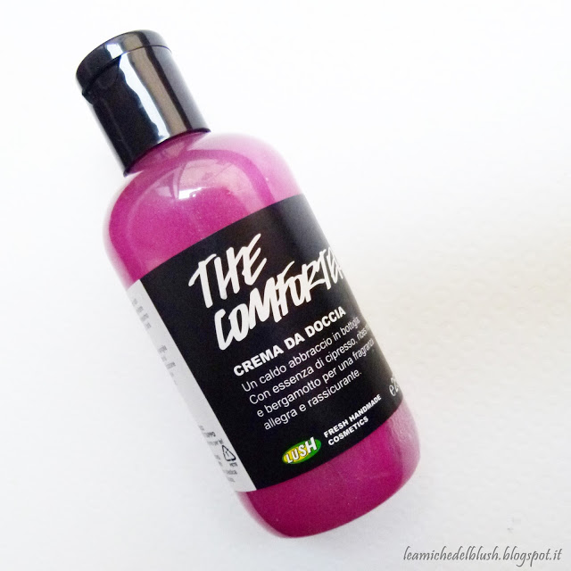 Il primo prodotto che ho terminato da pochissimi giorni è il nuovo bagnoschiuma di Lush, si chiama The Comforter ed è una crema da doccia con ribes nero e vaniglia. Il profumo è davvero avvolgente e dolce e continuerete a sentirlo sulla pelle a lungo dopo la doccia, inoltre ha un potere idratante davvero elevato, cosa che caratterizza tutti i prodotti Lush. Il colore è un fucsia intenso con riflessi azzurri e colorerà tutta l\’acqua della vasca o della doccia sprigionando profumo e rendendo gioioso l\’utilizzo. L\’ho adorato e devo ammettere che sto scoprendo pian piano un mondo dietro ai bagnodoccia di Lush. E\’ disponibile in tutte le botteghe Lush in ed.limitata e in 3 formati: 100g per 7,95 euro – 250g per 15,95 euro – 500g per 26,95 euro.