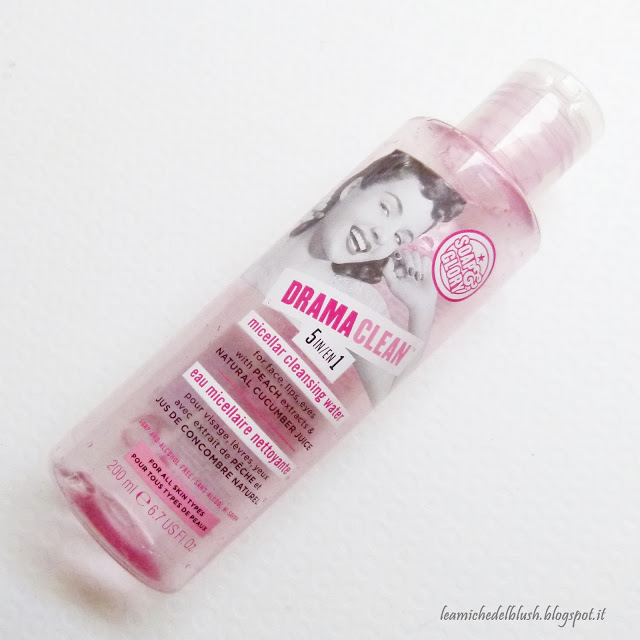 In primavera avevo acquistato in Inghilterra questa acqua micellare di Soap & Glory e l\’ho terminata alla fine dell\’estate. Mi è piaciuta parecchio perchè trovo che strucchi davvero bene anche con poco prodotto. E\’ fresca e non appiccica anche senza risciacquo; non è adatta per gli occhi, a me personalmente brucia ed inoltre non strucca bene mascara ed eyeliner. Non ha profumo e non secca la pelle dopo l\’uso. Promossa, ma per ora non ricomprata. Costa circa 6/7 £ per 200ml.