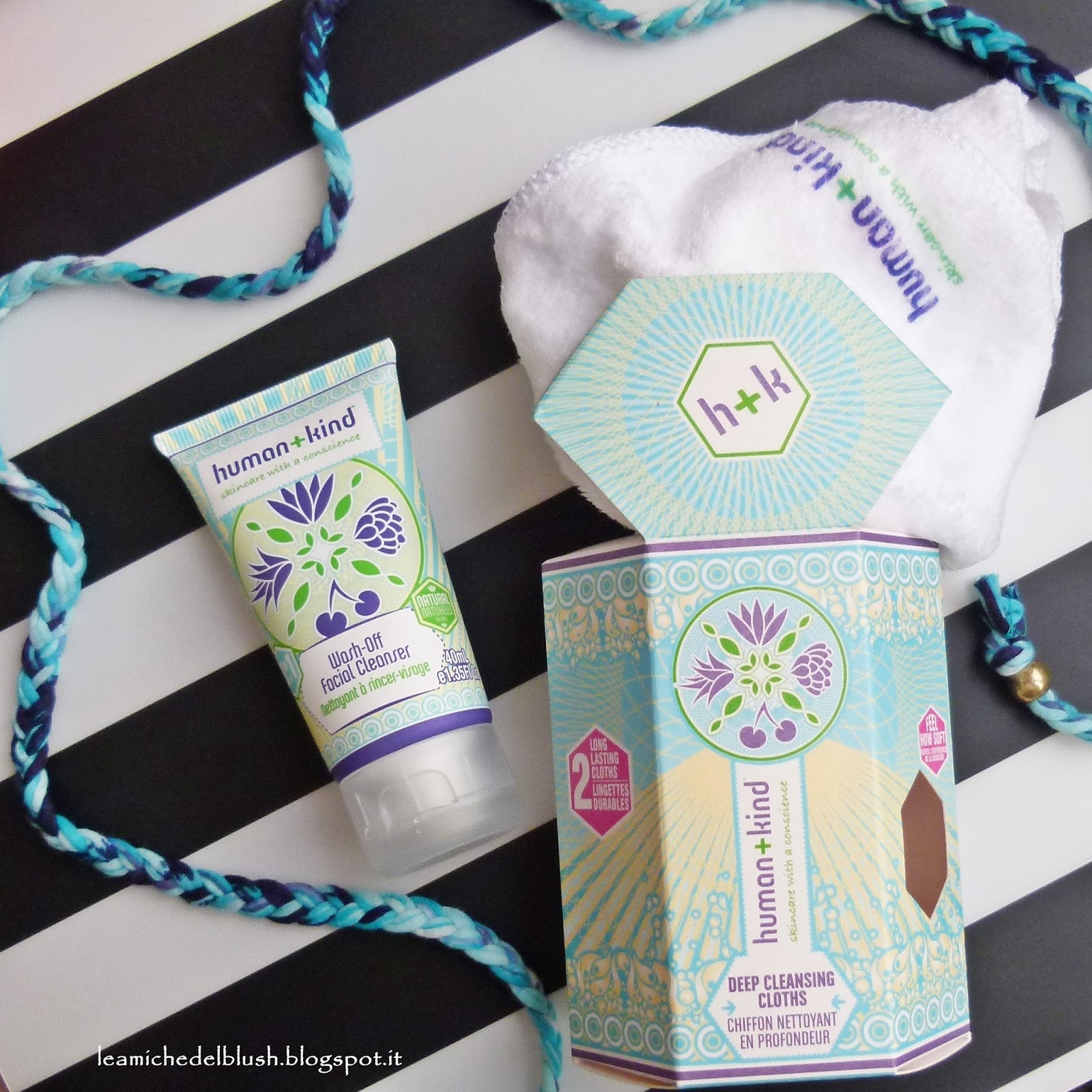 Adoro letteralmente questi pannetti, perchè vanno a rimuovere tutte le tracce di makeup e sporco; anche se la pelle può sembrare pulita, passando il pannetto ancora qualche traccia di trucco ed impurità viene rimossa. I panni Human+Kind sono ideali anche per struccarsi bagnandoli solo con acqua oppure usando il detergente, io però non amo questo metodo, perchè il pannetto essendo bianco, si sporca moltissimo. Preferisco di gran lunga l\’utilizzo post Clarisonic per rimuovere la schiuma creata dal detergente e sciacqure allo stesso tempo il viso.