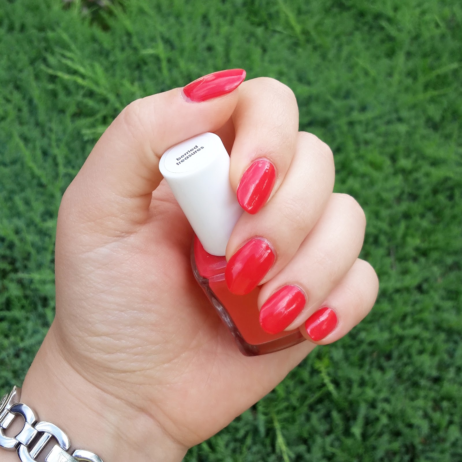 Altro smalto usato durante il mese di Agosto è in edizione limitata di Essie, si chiama \”Berried Treasure\”. Questo è proprio un colore estivo, fucsia brillante con una punta di rosso. Io amo gli smalti Essie che uso da anni, hanno un pennellino largo che aiuta nella stesura e la formulazione è simil gel. Sono coprenti sin dalla prima passata, io al solito ne faccio due, e durano anche 10 giorni. In questo caso il prezzo è maggiore, parliamo di 12/13 euro, ma secondo me li valgono tutti. Potete trovarli in moltissime profumerie e catene di prodotti per la persona.