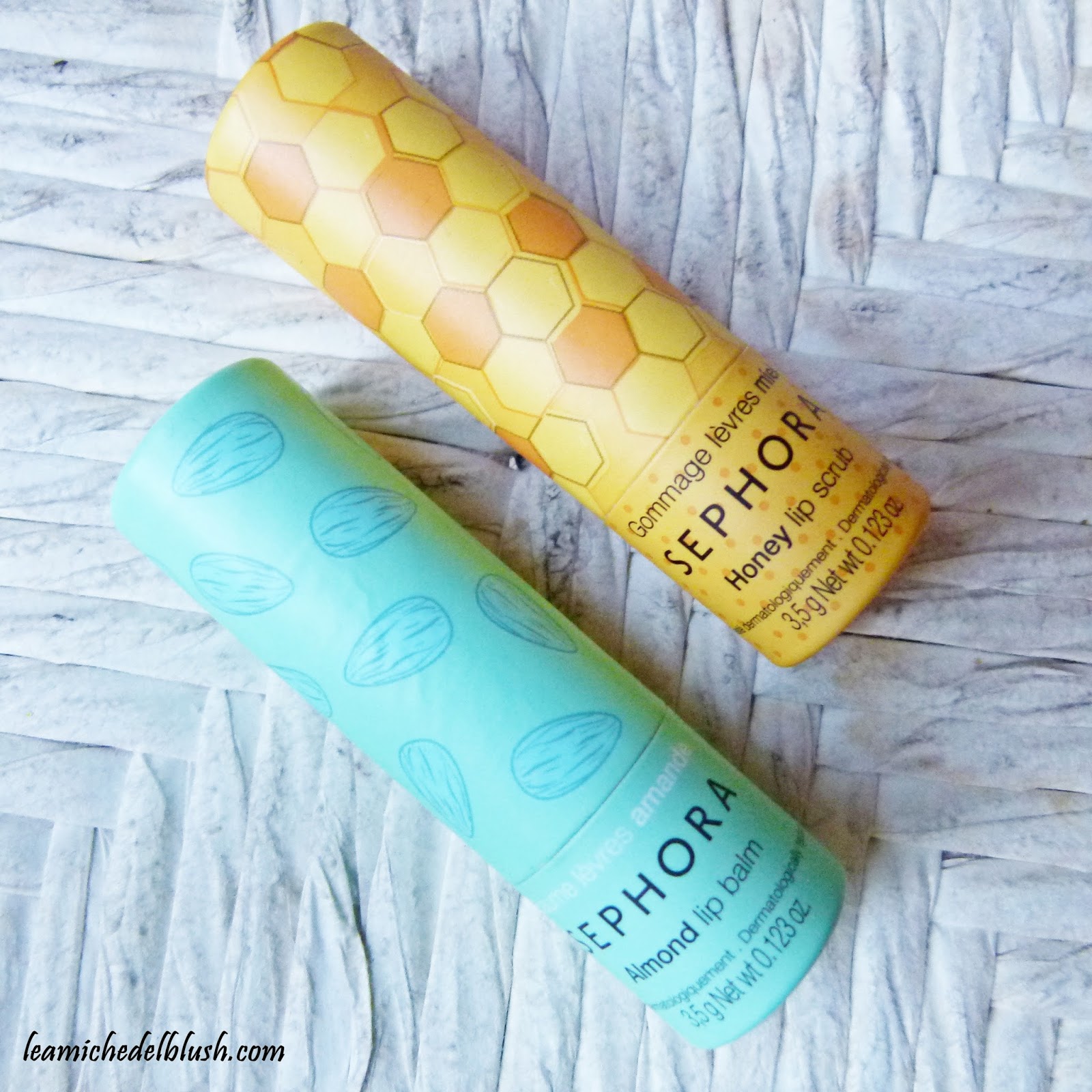I balsami si presentano in una confezione in cartoncino colorato con richiami all\’ingrediente principale di cui sono fatti: quello alla mandorla per esempio è verde ed ha delle piccole mandorle disegnate sopra; quello al miele invece è giallo, con gli esagoni tipici dell\’alveare!