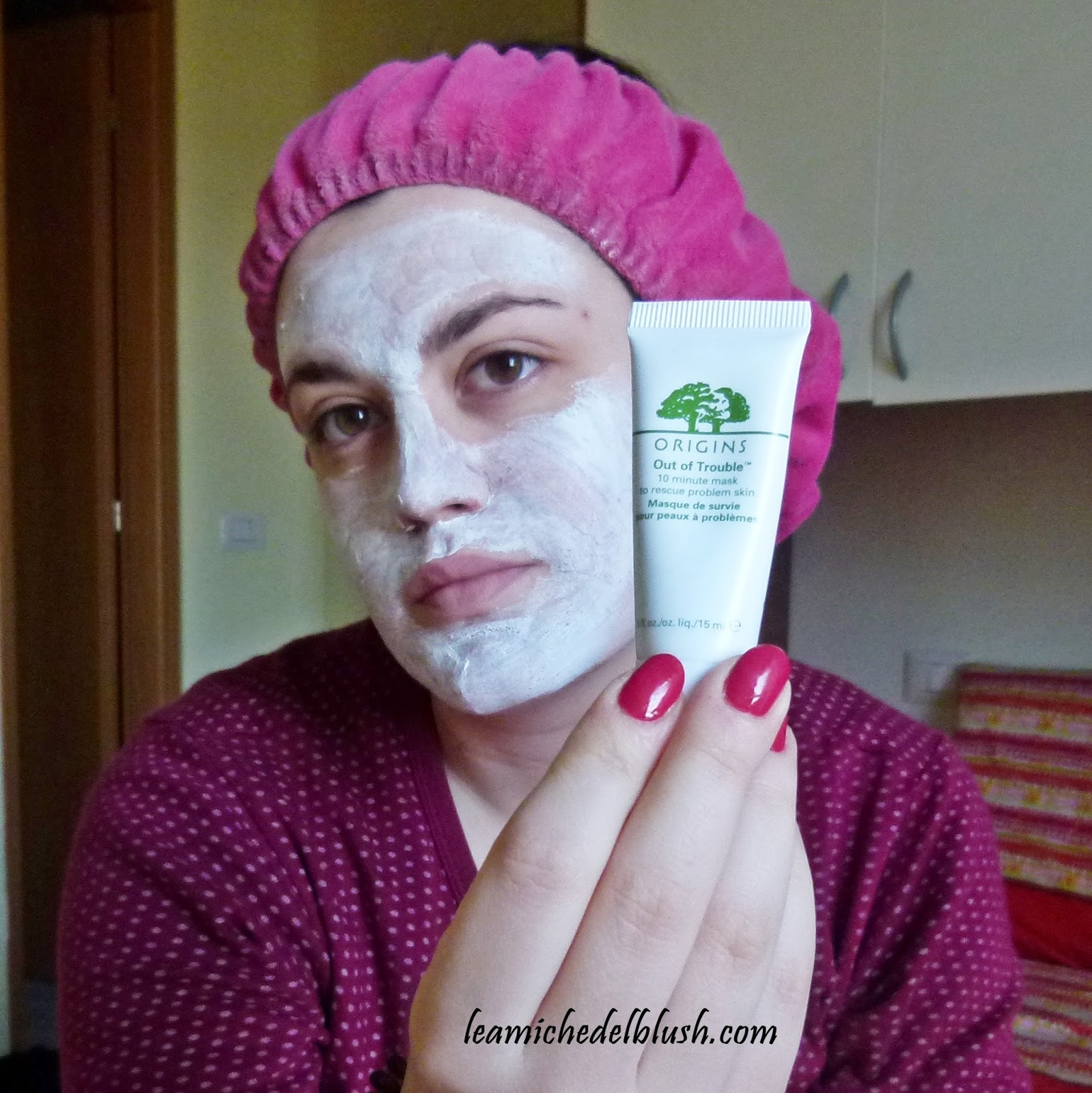 – OUT OF TROUBLE: zinco e canfora sono i due principali ingredienti di questa maschera che ti tira letteralmente \”fuori dai guai\”! Agisce sotto diversi aspetti, elimando l\’eccesso di sebo, le cellule morte, affinando la grana cutanea ed aiutando a prevenire l\’insorgere di nuove imperfezioni. La consistenza è molto \”pastosa\”, anche in questo caso la maschera si asciuga sul viso e va risciacquata con acqua tiepida. E\’ perfetta per le pelli grasse. L\’ho adorara sin da subito per il suo essere multitasking, ho una pelle mista ed ha funzionato benissimo!