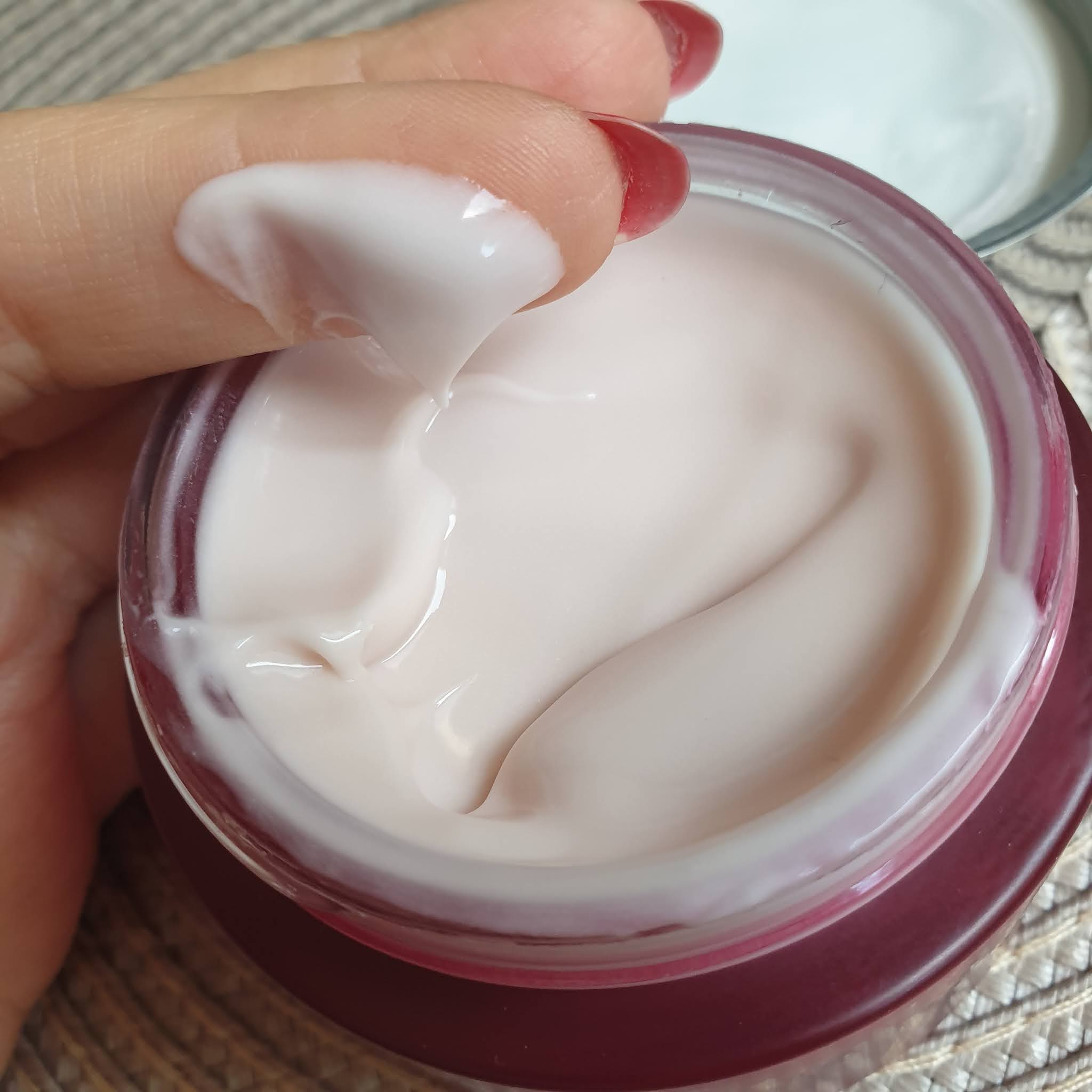 All\’interno la crema si presenta dall’aspetto vellutato, mi ricorda quasi la consistenza di uno yogurt: al tatto si percepisce una formulazione studiata nei minimi dettagli. La conferma di ciò arriva con il vero e proprio utilizzo sul viso del prodotto.